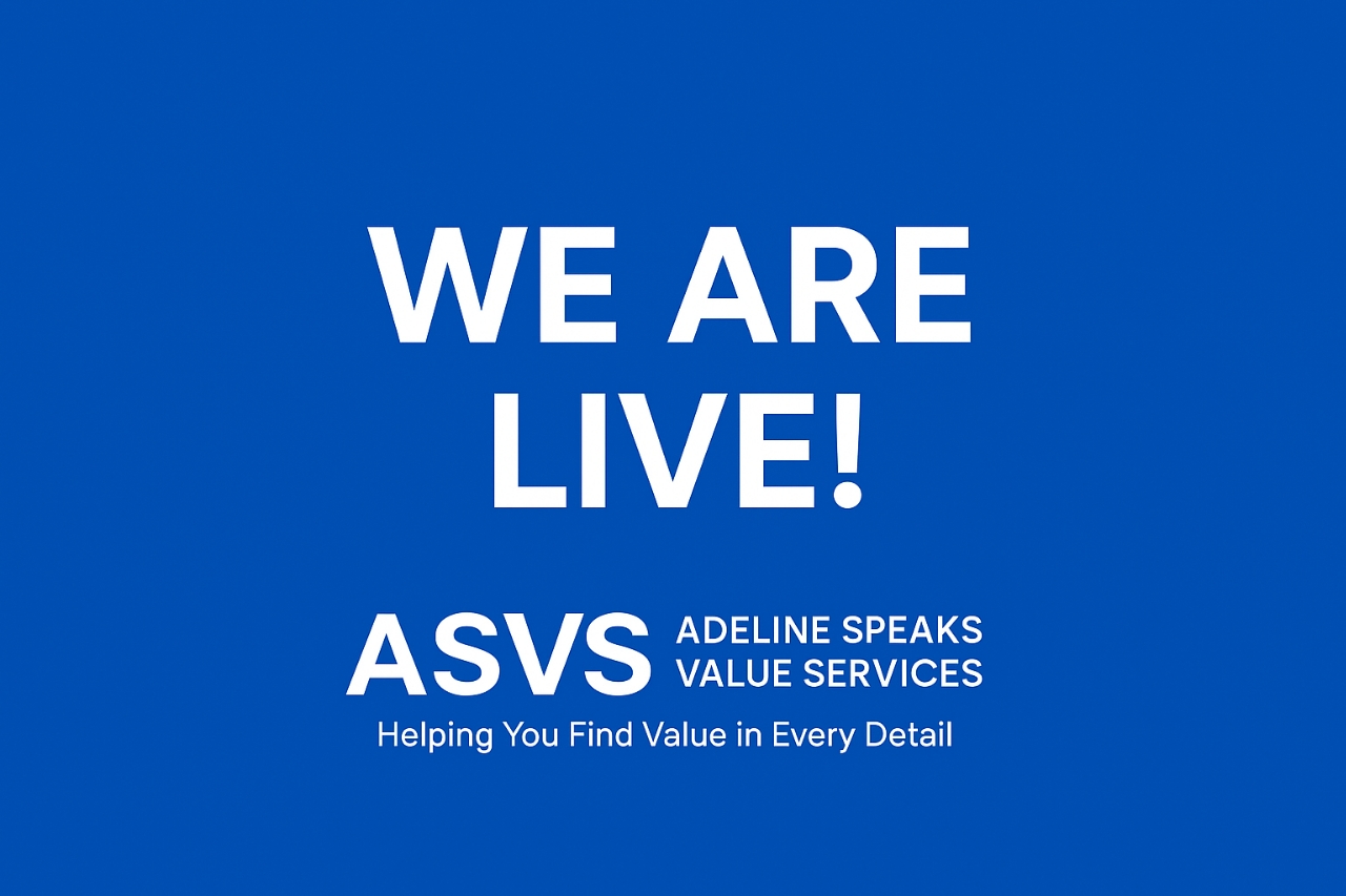 - At Adeline Speaks Value Service (ASVS), we believe every detail matters. Our mission is simple: to help individuals, professionals, and businesses unlock value by providing reliable, professional, and tailored support services.We specialize in three core areas:1. Administrative & Support Services – helping you stay organized, save rime, and focus on what truly matters.2. Data Analysis & Reporting – turning numbers into meaningful insights that guide smart decisions.3. Brand Development & Communication Support – giving your brand a clear voice and strong presence that connect with your audience.